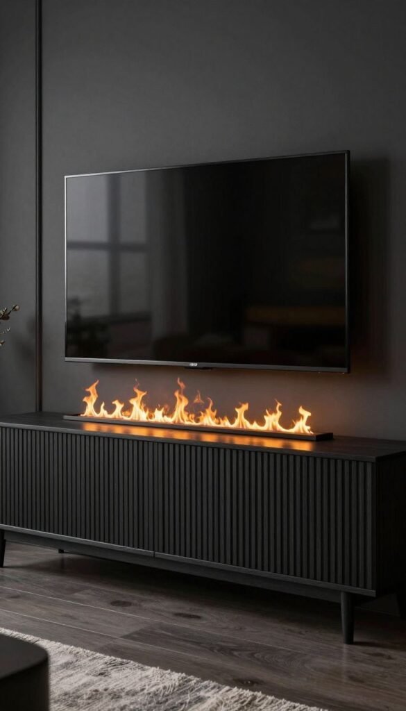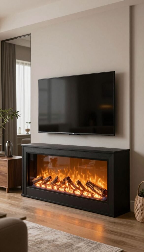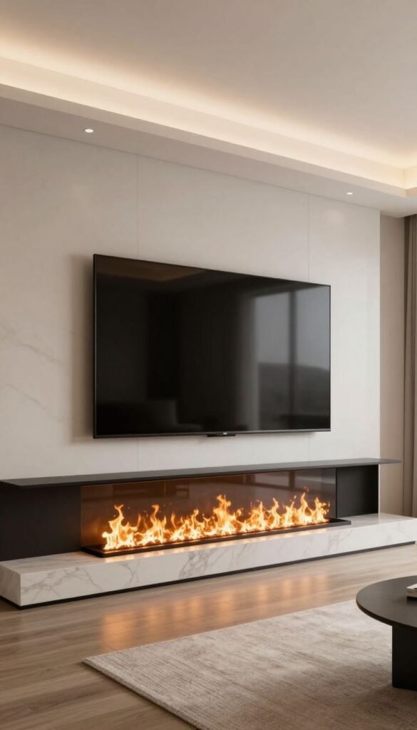 Pro tip: Vary heightsโlower fire, slightly higher TV. It works because asymmetry feels intentional and artsy.
