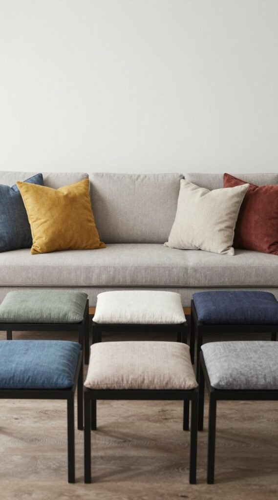 Pick three core colors and repeat them across both zones. Think sofa cushions, dining seat pads, and a runner that echo each other. Add one accent color that pops, but keep it consistent.