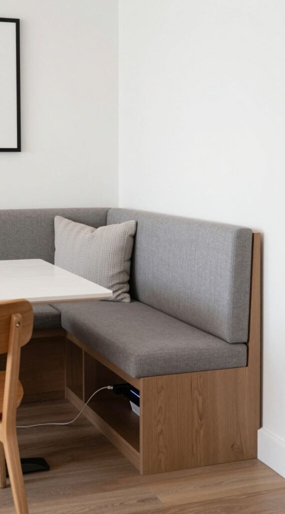 Use a banquette or storage bench along a wall for dining seating and hidden stash space. It saves floor space and looks custom. Top with wipeable cushions for practicality.