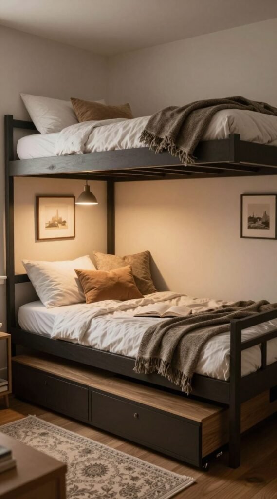 You get a micro library without sacrificing sleep space—chef’s kiss for tiny rooms.