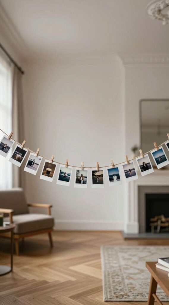 Hang polaroids on twine with mini clips or arrange them in gentle waves.