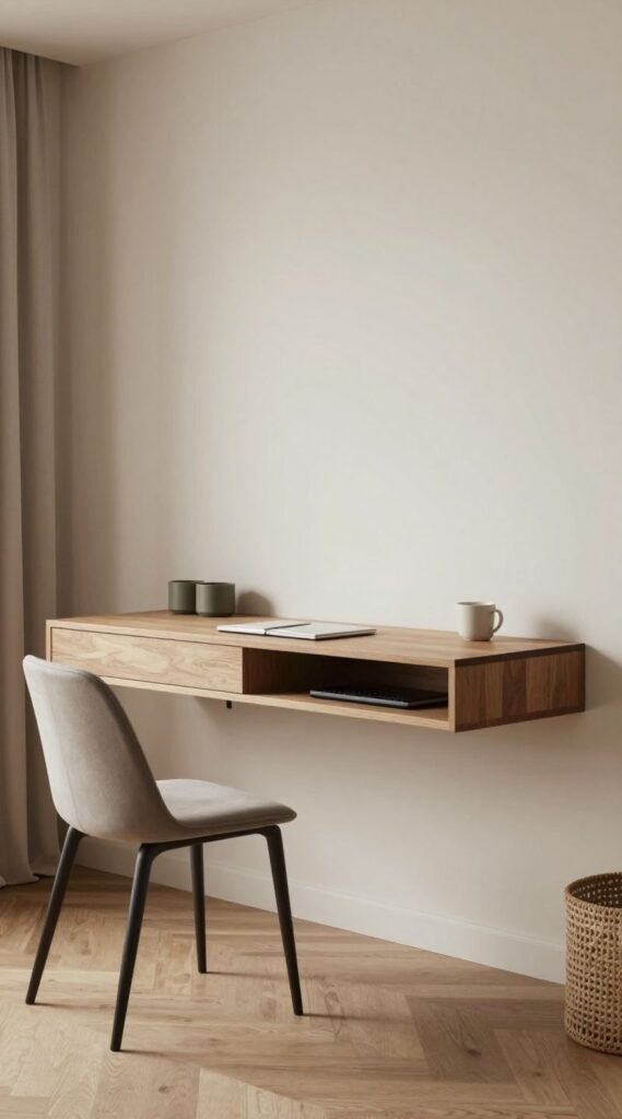 Save the floor, win the room. A floating desk keeps things airy and modern. Pair it with a slim chair and youโve got instant studio vibes.