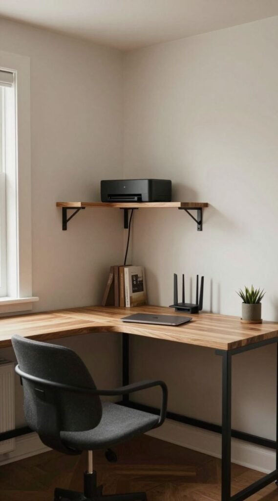 Pro tip: Mount a small corner shelf above the desk for a printer or router. Out of sight, still reachable.