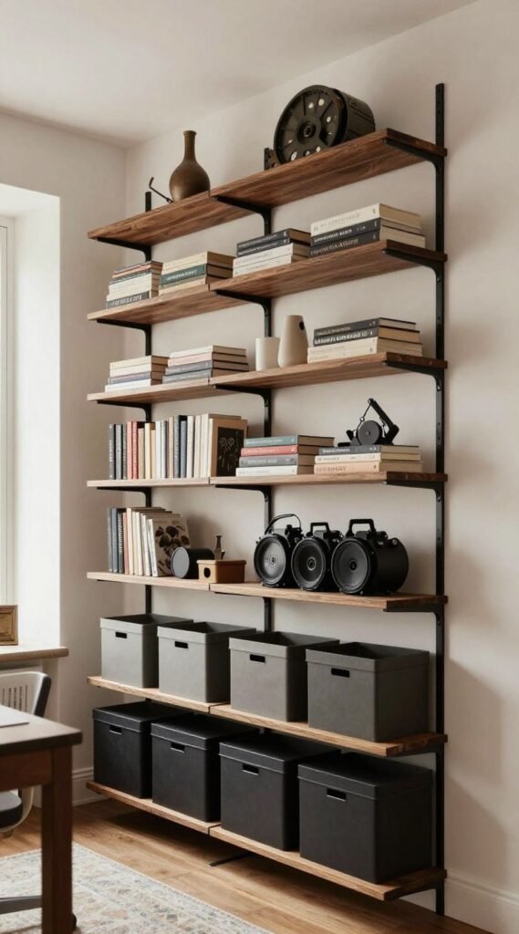 Climb the walls, not the rent. Tall shelves turn your office upward, not outward.