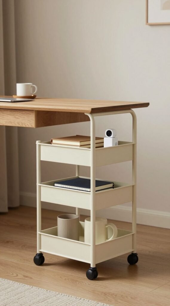 Need space? Roll with it. A slim cart slides under desks or out of the way.