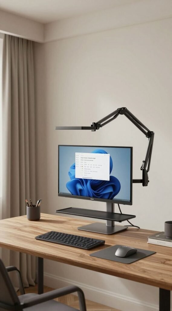 Pro tip: Clamp a laptop shelf next to the monitor for a dual-screen setup without a bulky stand.