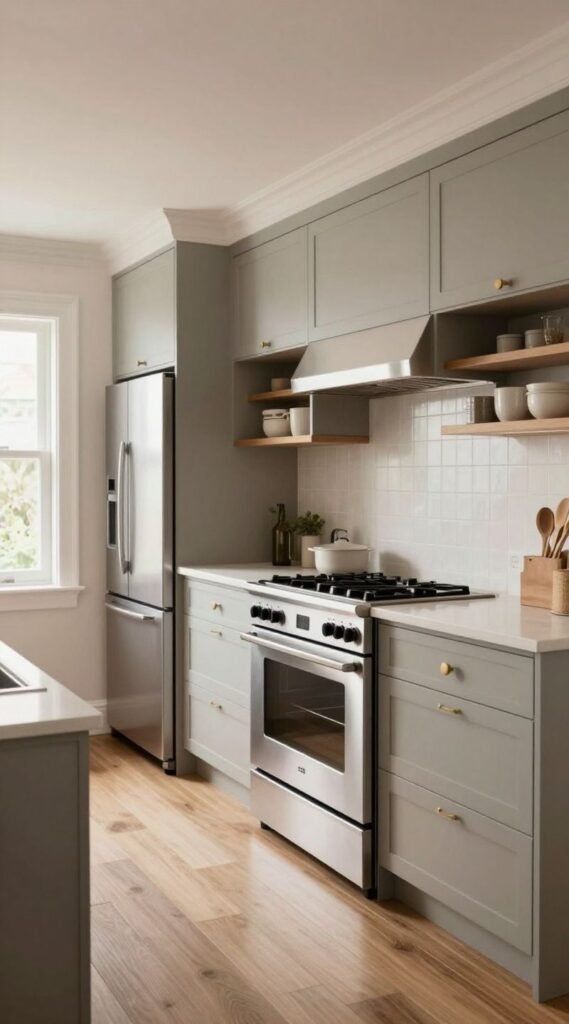 Run the kitchen along one wall from door to bath. Itโs efficient and surprisingly generous if you keep it sleek.
