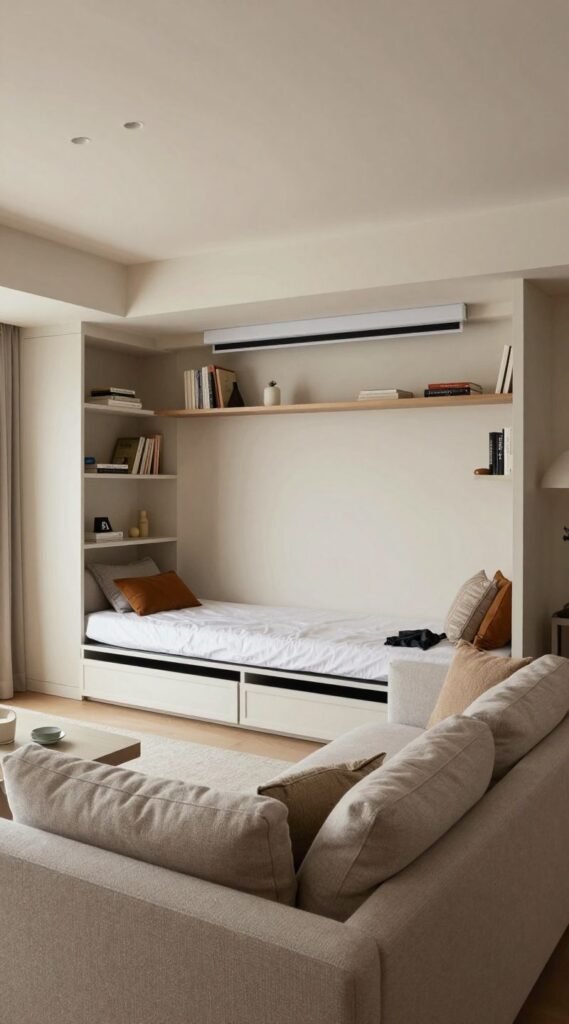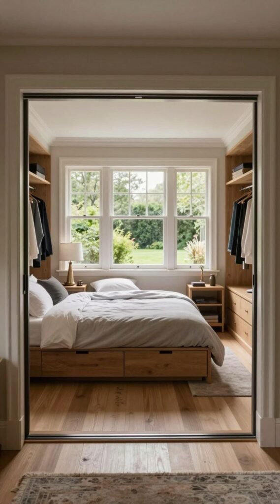 Pro tip use a Murphy bed to convert to yoga studio mode. It works because accessibility is queen and storage stays practical.
