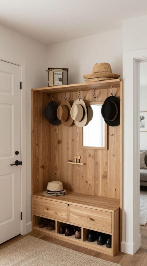 A mini mudroom by the door keeps chaos from migrating. Your future self says thanks.